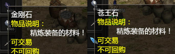 用途:精炼装备时的必备物品,随着精炼次数的增加,所需材料会更加稀有